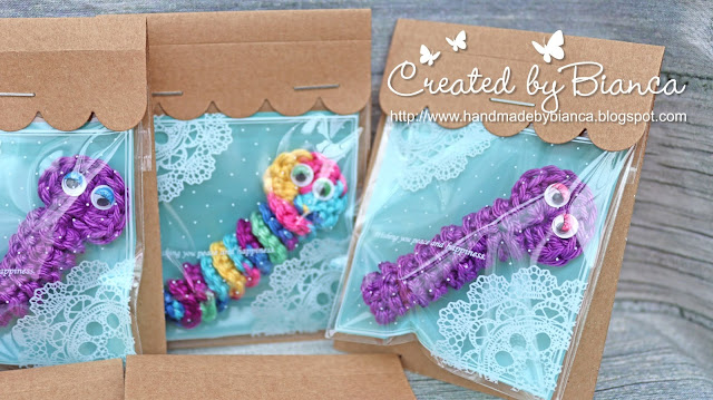 Weil ich mir beim "aussetzen" manchmal gewünscht hätte, dass ich die Würmchen nicht immer fest binden muss habe ich diesmal eine Verpackung dazu gewerkelt in der ich die "Sorgen-Würmchen" einfach hinterlegen kann, ganz ohne anknüpfen.
